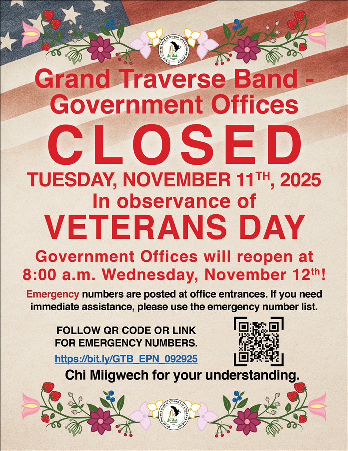 Government Offices Closed & will reopen 8am Wednesday, November 12th!