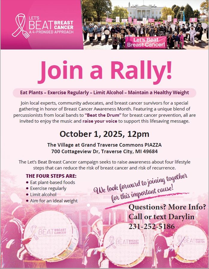Join local experts, community advocates, and breast cancer survivors for a special gathering in honor of Breast Cancer Awareness Month. Featuring a unique blend of percussionists from local bands to "Beat the Drum" for breast cancer prevention, all are invited to enjoy the music and raise your voice to support t his lifesaving message.