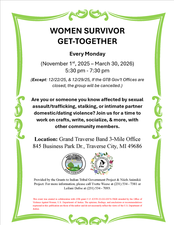 This event was created in collaboration with GTB grant # 15 JOVW-22-GG-03376-TRIB awarded by the Office of Violence Against Women, U.S. Department of Justice. The opinions, findings, and conclusions or recommendations expressed in this publication are those of the author and do not necessarily reflect the views of the U.S. Department of Justice.