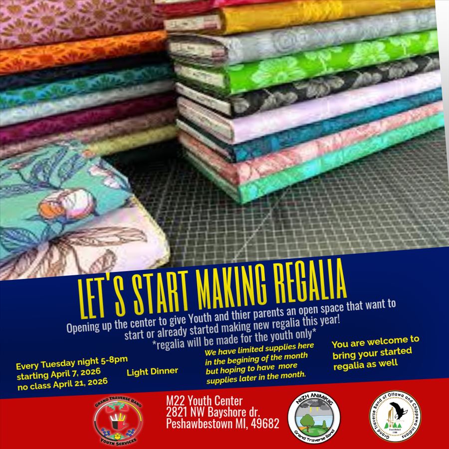 Opening up the center to give Youth and their parents an open space that want to start or already started making new regalia this year! *regalia will be made for the youth only*