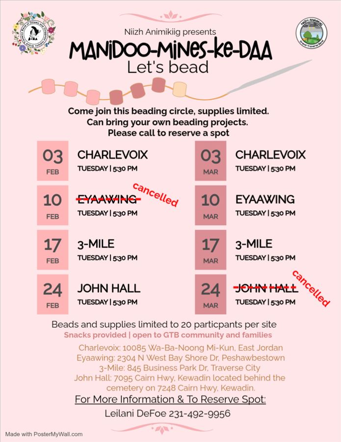 Manidoo-Mines-ke-Daa (Let's Bead) Cancelled for Tuesday, March 24th